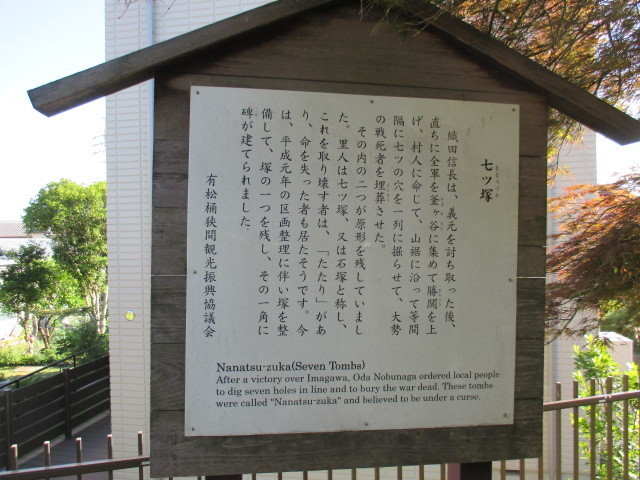 合戦の後、信長は、村人に命じて、七つの穴を掘って埋葬したと言われます。