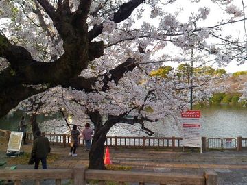 周囲の環濠沿いにソメイヨシノが咲いていて、歴史を感じながらお花見ができます。